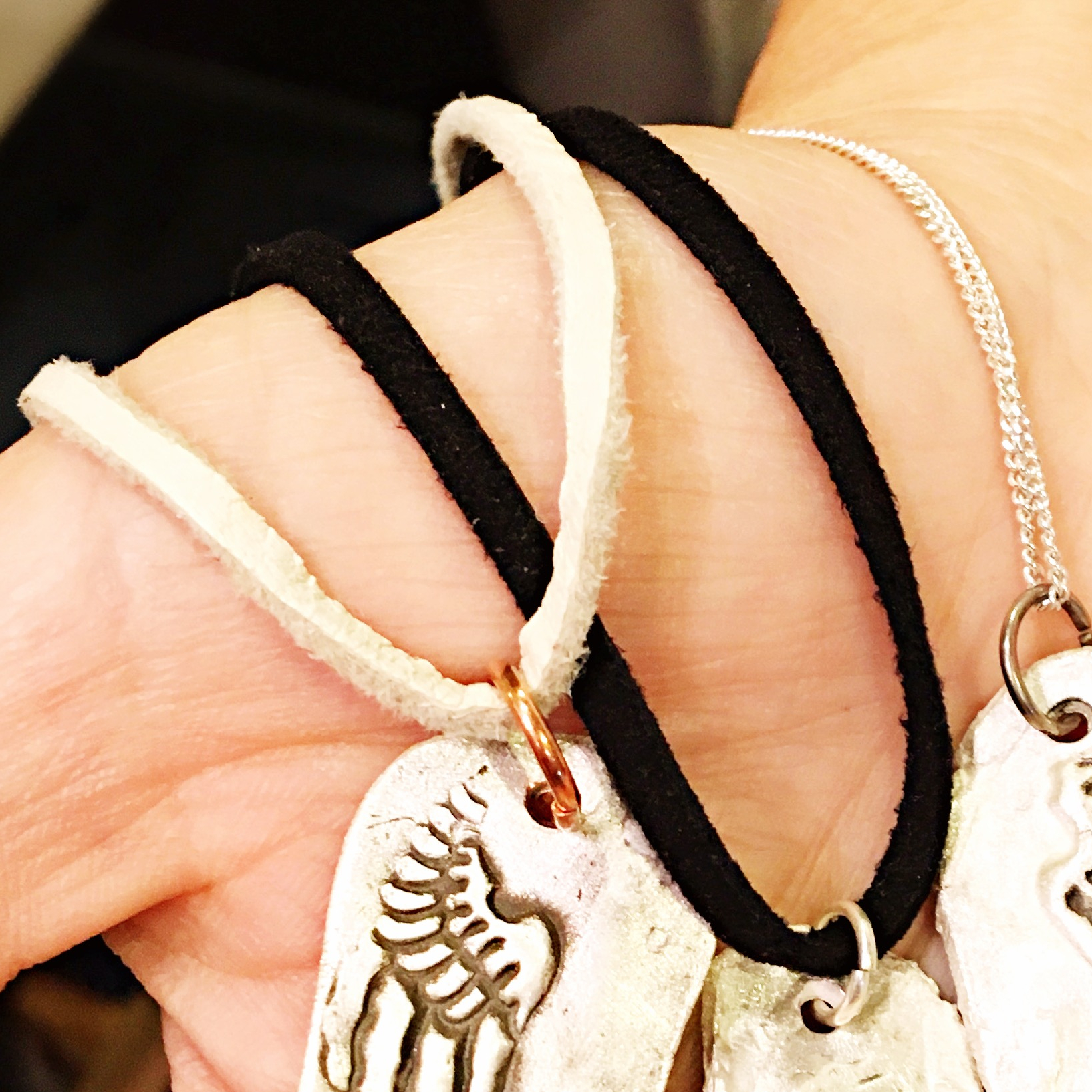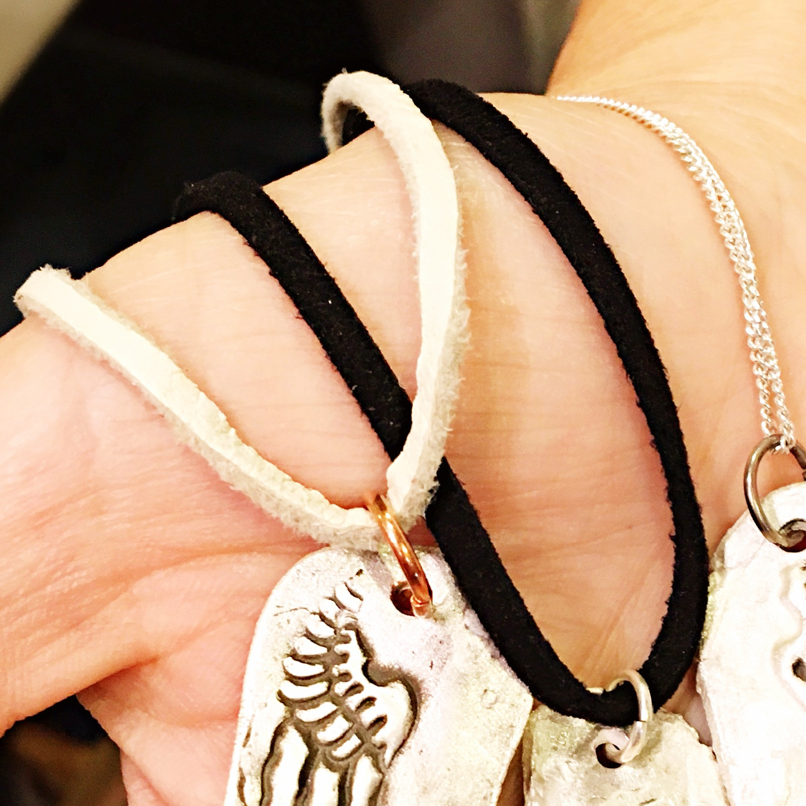 • Lace/Chain: Willow (light cream colored) fair trade deerskin lace| Black vegan or leather lace | Italian sterling silver coated with fine silver