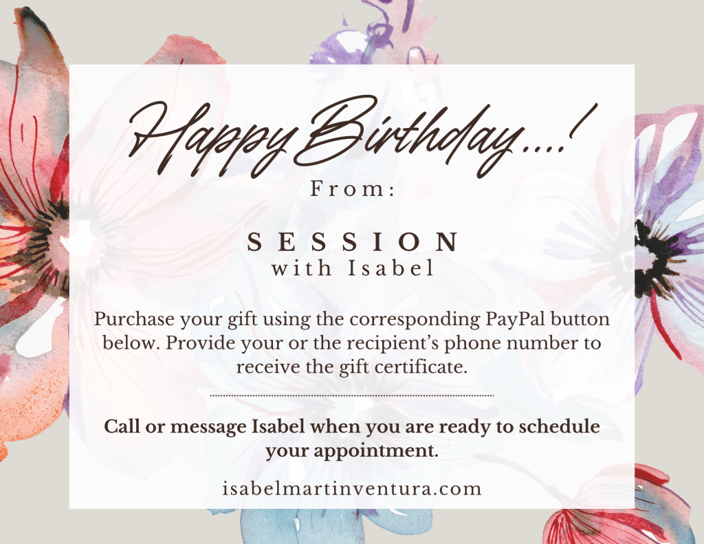 A spiritual roaching with Isabel is an opportunity to connect with the deeper, spiritual nature of who you are, understand the patterns that you keep reliving, and come away with a renewed sense of self, inspiration and purpose. As an intuitive, Isabel can offer spiritual insight and guidance into current situations, relationships, and life purpose for greater understanding, love and healing.